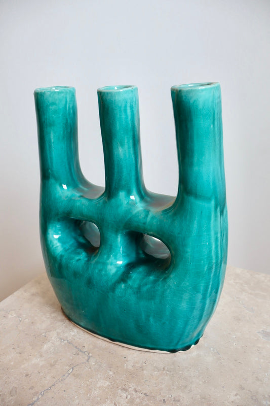 Enfin, les pièces subissent une ultime cuisson de 36 heures à 1000°C. Cette étape permet de stabiliser et de renforcer la structure de chaque objet, tout en fixant définitivement l’émail et les décorations.