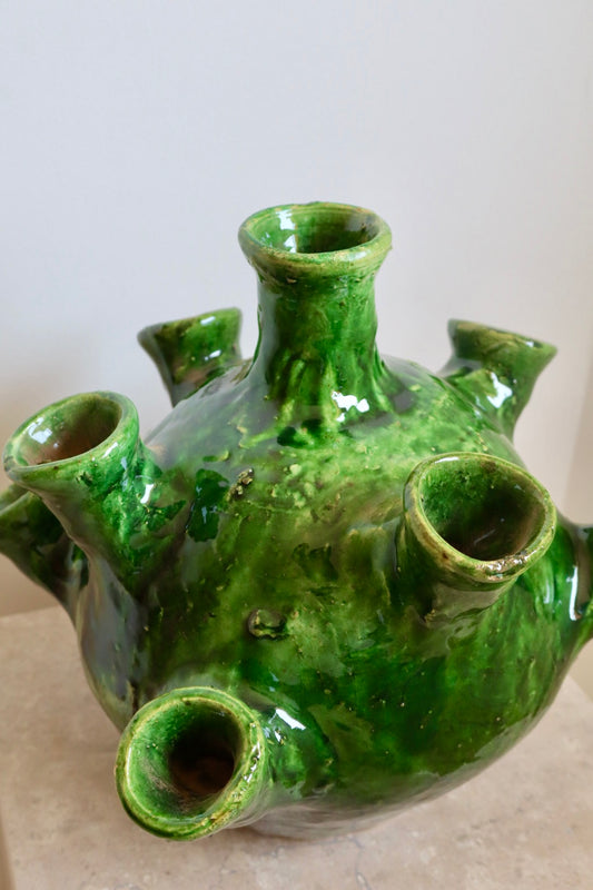 Après la décoration, chaque pièce est soigneusement émaillée cela permet de protéger les motifs tout en rendant la surface lisse et brillante. L'émail diminue également la porosité de la faïence, ce qui rend les pièces adaptées à un usage alimentaire et compatibles avec un passage au lave-vaisselle.